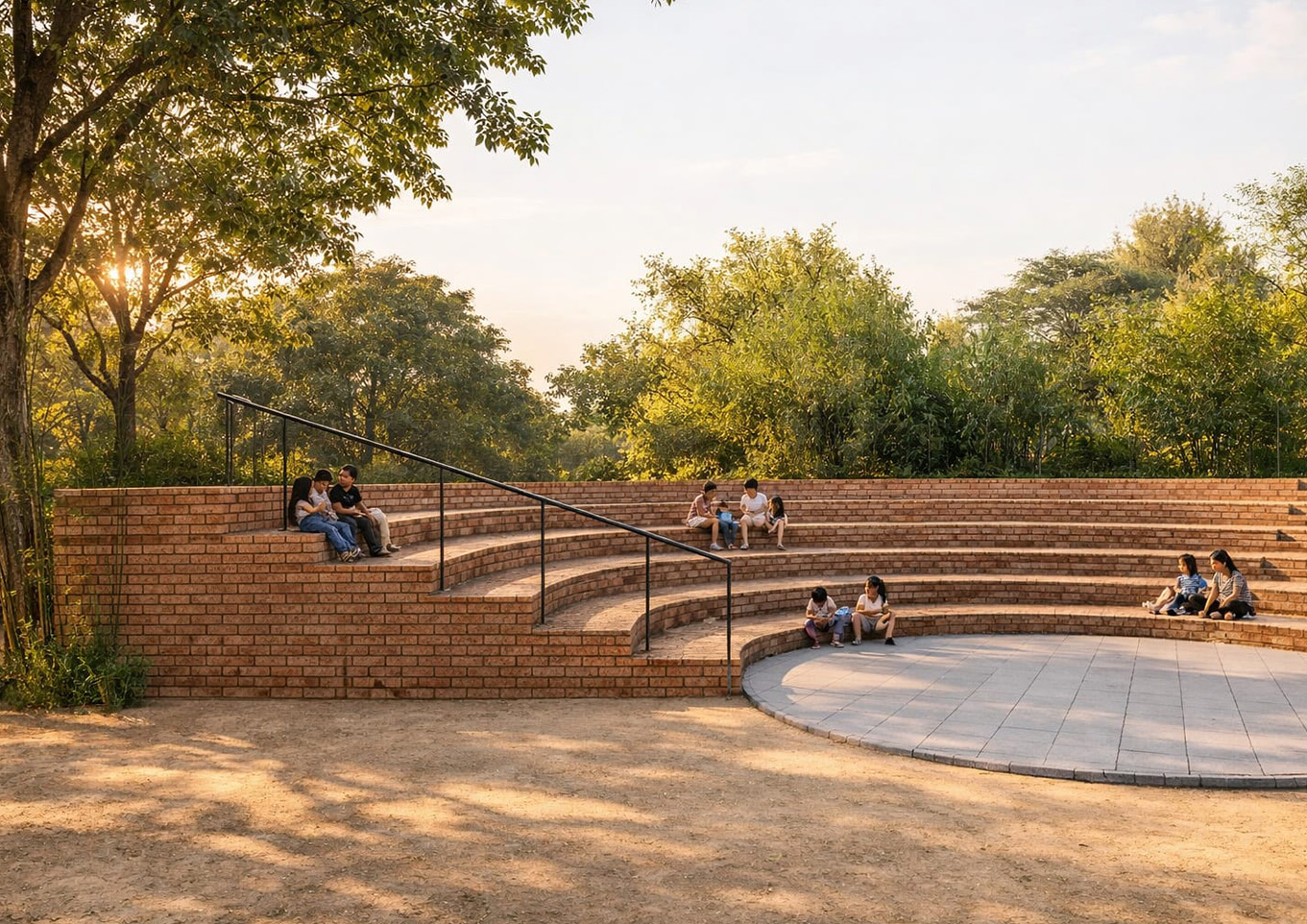 The Oasis School curriculum has successfully fostered the belief that joy of childhood and the joy of learning can go hand in hand. However, the school has struggled with its own sense of identity architecturally and needs outdoor landscape enhancement. The project was intended to enhance that identity and provide the urban campus with much needed green space for recreation, discovery, play and dining.The landscape designed for the school is a large-scale improvement project that created a distinct entrance for students and parents, a new central Assembly ground, more green space with connecting path. site topography is an advantage to create a series of open spaces with ample seating encasing various activities. There has been segregation of play areas with meandering pathways that link the campus together. In addition, the campus expansion program called for shaded seating areas, an amphitheatre and new play features. The result was a tactile, naturalistic environment designed for children, an urban oasis with opportunities for outdoor classroom activity and individual discovery. The former main entry has main parking adjacent,restricting the vehicular movement along the overall site. Beyond the drive way lies courts under tree canopies that function as waiting areas and outdoor dinning activities. The main playground is segregated to a gallery seating on one side and an enclosed space on the other side that helps organise summer camps. The two zones are strategically located to improve the usability of the space. The overall landscape terminates into playcourts and tot lot area. Lush landscape including softscape will be included alongside the walkways connecting the entire campus.